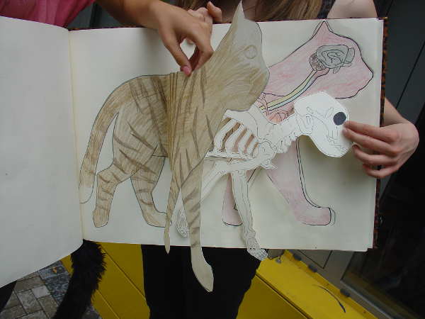 Eine weitere zentrale Rolle der selbst gefertigten Künstlerbücher ist das Thema des Buches. Jeder Schüler sollte sich ein Leitmotiv aus dem Bereich Umwelt, insbesondere im ökologischen Sinne, aussuchen und zum Inhalt seines Buches machen. Das kann der Klimawandel, die Gentechnik, der Tierschutz etc. sein. Wichtig war dabei, dass die Ideen mit den zur Verfügung stehenden künstlerischen Mitteln dargestellt wurden.