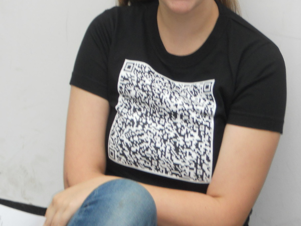 QR-Codes gehören zur Familie der 2D-Barcodes die im Gegensatz zum herkömmlichen Barcodes sowohl horizontal als auch vertikal Informationen enthalten. Der QR-Code wurde zur Markierung von Baugruppen und Komponenten für die Logistik in der Automobilproduktion des Toyota-Konzerns entwickelt. Das den QR-Code entwickelnde Unternehmen Denso kooperierte bereits als Zulieferer unter anderem für sämtliche elektrischen und elektronischen Baugruppen mit Toyota. Die Entwicklung des 2D-Codes übernahm die Tochterfirma Denso Wave, die auch Identifikationssysteme und Geräte zur mobilen Datenerfassung entwickelt. Der QR-Code besteht aus einer quadratischen Matrix aus schwarzen und weißen Punkten, die die kodierten Daten binär darstellen. Eine spezielle Markierung in drei der vier Ecken des Quadrats gibt die Orientierung vor. Die Daten im QR-Code sind durch einen fehlerkorrigierenden Code geschützt. Dadurch wird der Verlust von bis zu 30 % des Codes toleriert, d. h. er kann auch dann noch dekodiert werden. Die Schülerinnen und Schüler haben Gedichte geschrieben, die im Anschluss über einen QR-Generator in eben diesen Barcode umgewandelt wurden. Danach entstanden Bilder und T-Shirts mit einem entsprechenden Aufdruck. Die Besucher konnten anschließend mit ihren Smart-Phones diesen Code wieder decodieren und so die Gedichte lesen.
