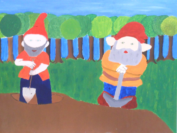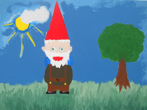 Sie werden geliebt und gehasst. Für manche Zeitgenossen sind Gartenzwerge der Inbegriff für Spießigkeit. In der Schule entstanden Bilder auf Leinwand mit lebensgroßen Gartenzwergen, Linoldrucke und Schablonenbilder, auch wurden Gartenzwerge aus Ton hergestellt. Und in der Schreibwerkstatt kurze Kriminalromane, in den Krimis kam immer ein Gartenzwerg vor. Der Gartenzwerg gilt als deutsche Erfindung und als eines der bekanntesten "typisch deutschen Produkte". Die ersten Gartenzwerge im heutigen Sinn – aus Ton und bunt bemalt - wurden vermutlich Ende des 19. Jahrhunderts in Thüringen hergestellt. Heutzutage gehört er zum festen Inventar deutscher Vor- und Schrebergärten. Es gibt ihn nicht nur traditionell mit Spaten und Laterne, sondern auch cool mit Sonnenbrille oder sogar in Badehose.