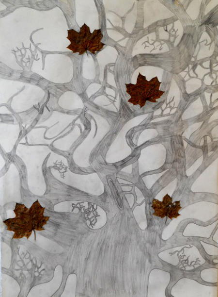 Auch Zeichnungen von Baumausschnitten gaben einen Einblick in die Natur.