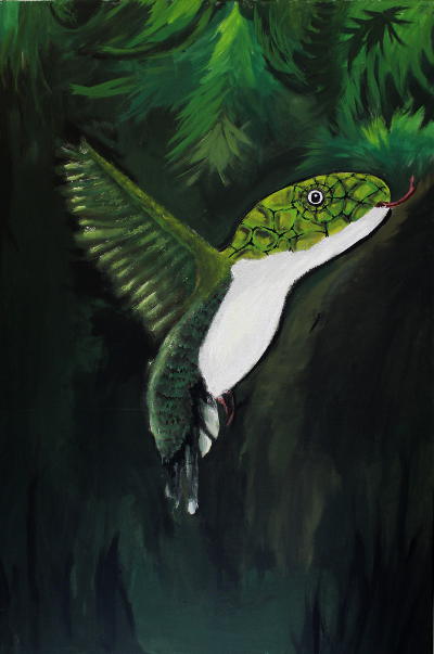 Ein weiteres Teilprojekt war das Vakuumieren von Kuscheltieren. Auch hier ein Hinweis auf das Aussterben vieler Tiere und das wir für deren Erhalt sorgen müssen, damit unsere Nachkommen noch viele Tierarten sehen können. Aber vielleicht gibt es in ferner Zukunft auch Tiere, die wir heute noch nicht kennen, ein Zebrakänguru, einen Elefantendelfin oder einen Schlangenkollibri? Hierzu malten die Schülerinnen und Schüler großformatige Bilder.